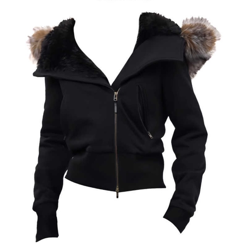 时尚 外套女秋季 显瘦设计感上衣 胖mm辣妹风连帽毛领可拆卸短款 大码