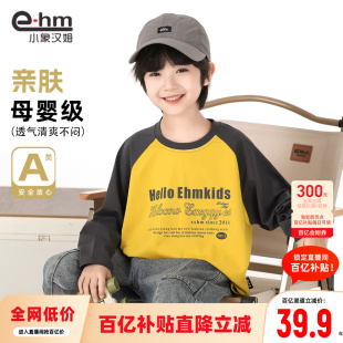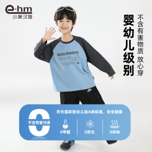 新款 小象汉姆童装 2026春装 T恤拼接儿童春天长袖 棉感上衣 男童长袖
