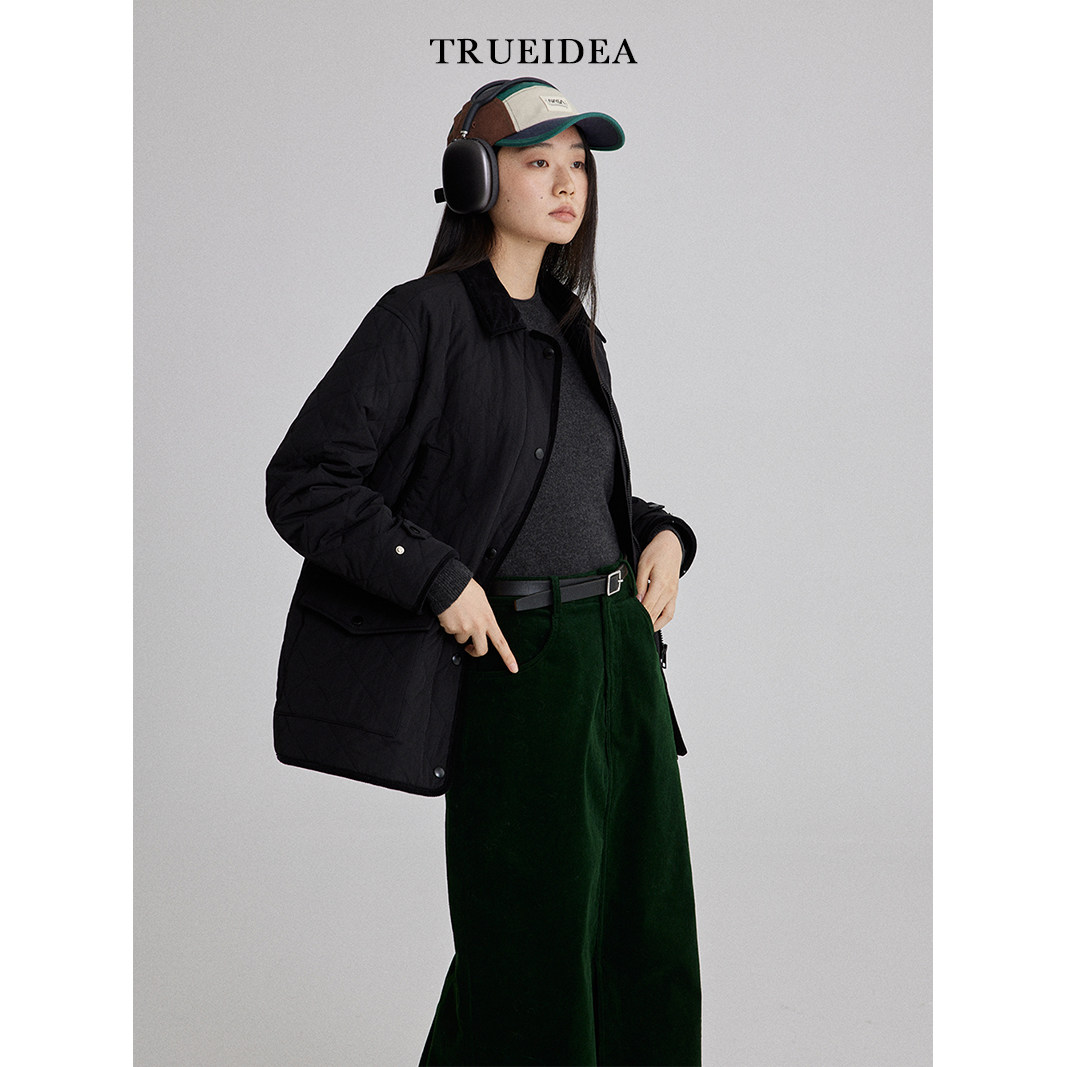 trueidea24冬百搭拼色bar款 软糯轻盈3M新雪丽棉保暖外套 菱格棉服