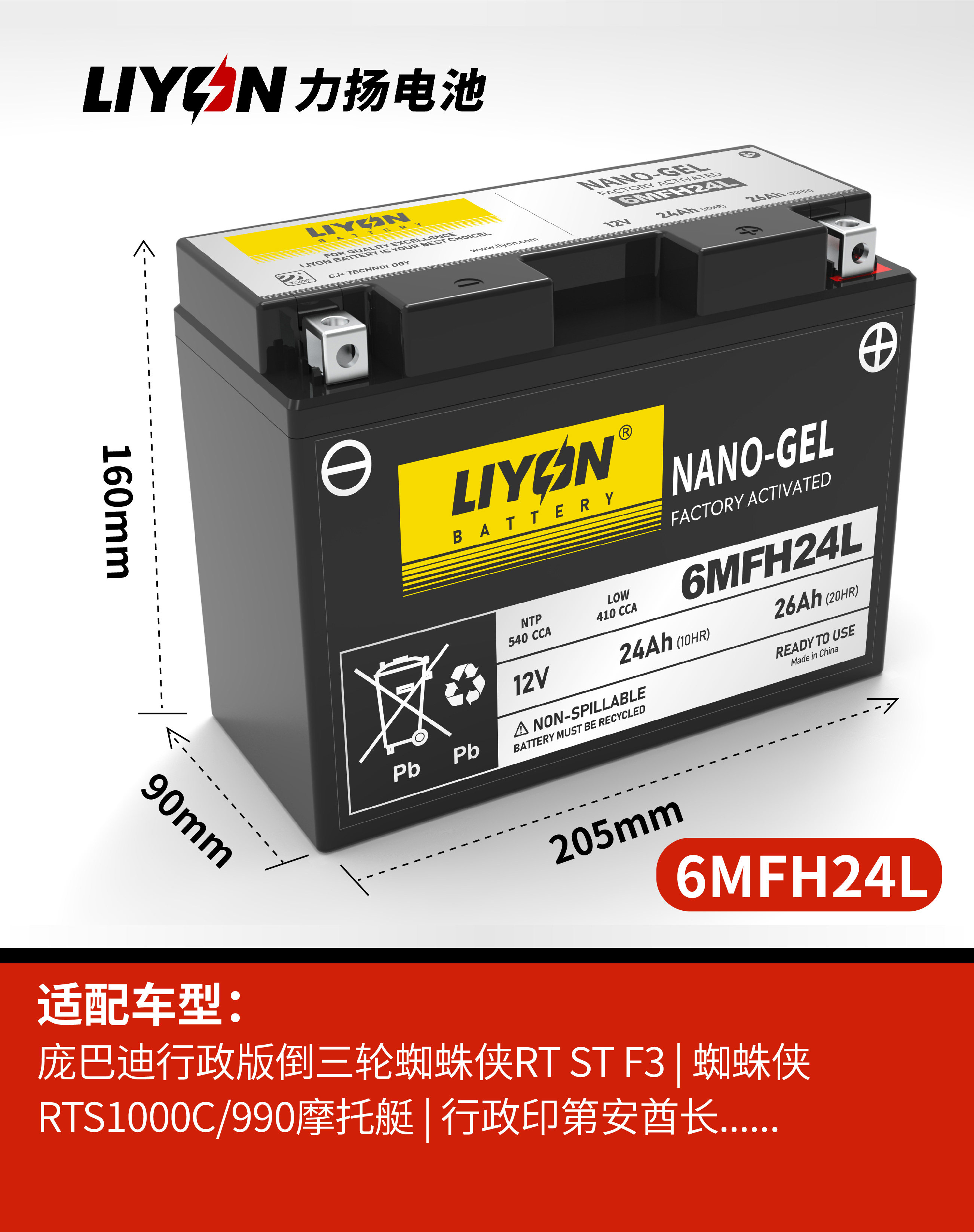 250 汽油三轮110 200 150 300型发动机适用摩托车启动干电瓶 125