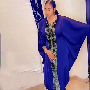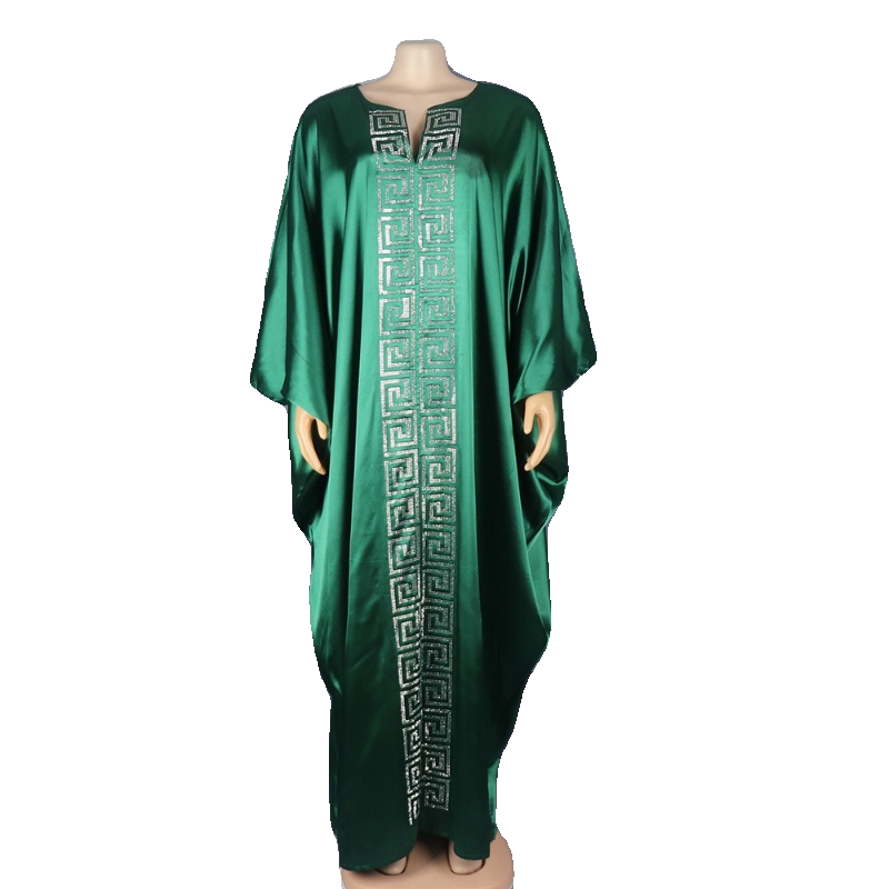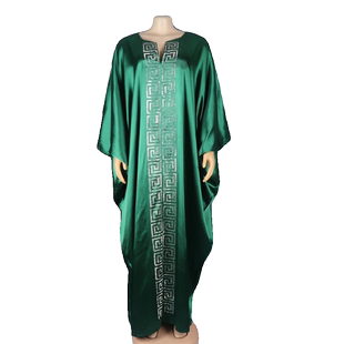 2024非洲印尼阿拉伯女连衣裙大码 V领长袍人造丝烫钻Dress 蝙蝠袖
