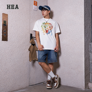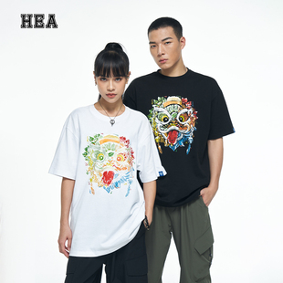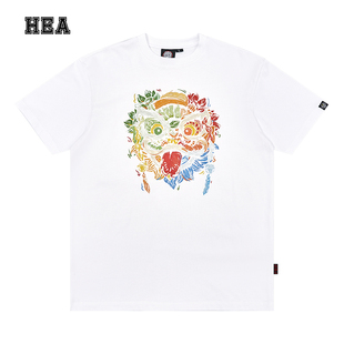 T恤男女同款 涂鸦狮头短袖 宽松潮流印花纯棉上衣 国潮醒狮个性 HEA