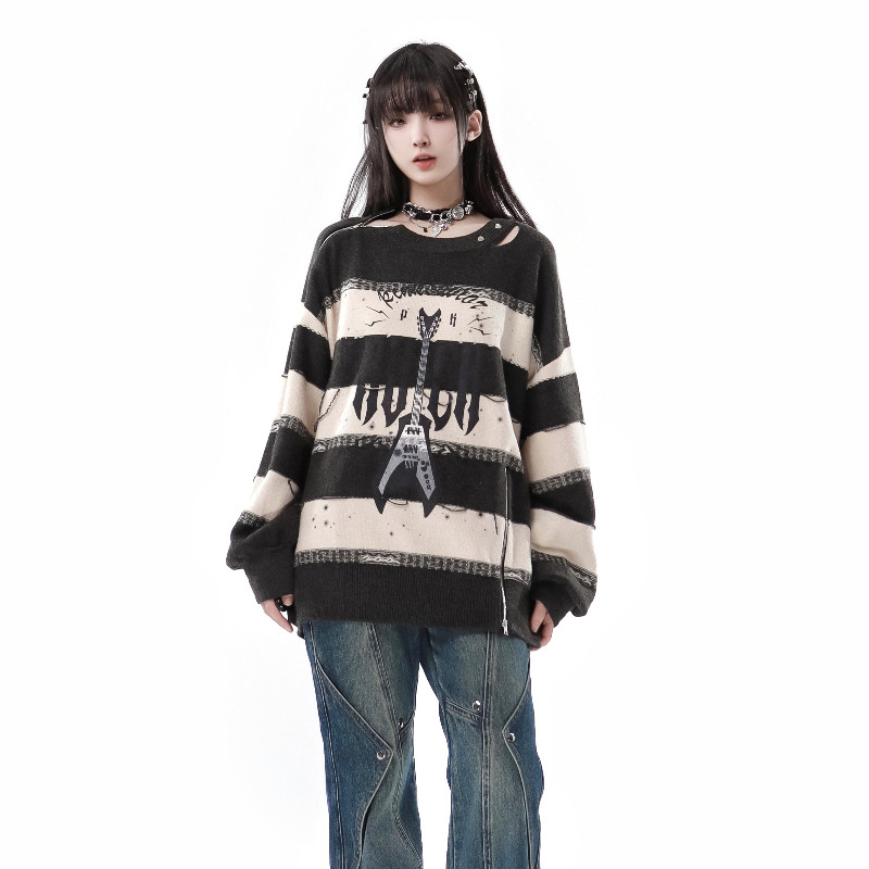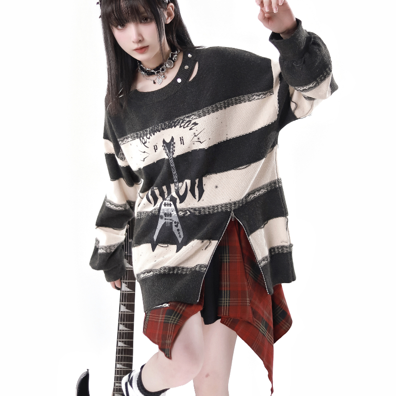 饰吉他条纹秋冬日常休闲毛衣半裙套 拉链装 pinksavior次元 音浪