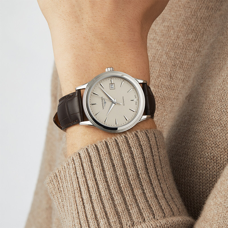 瑞士Longines浪琴军旗系列男款 自动机械皮带手表L4.984.4.79.2