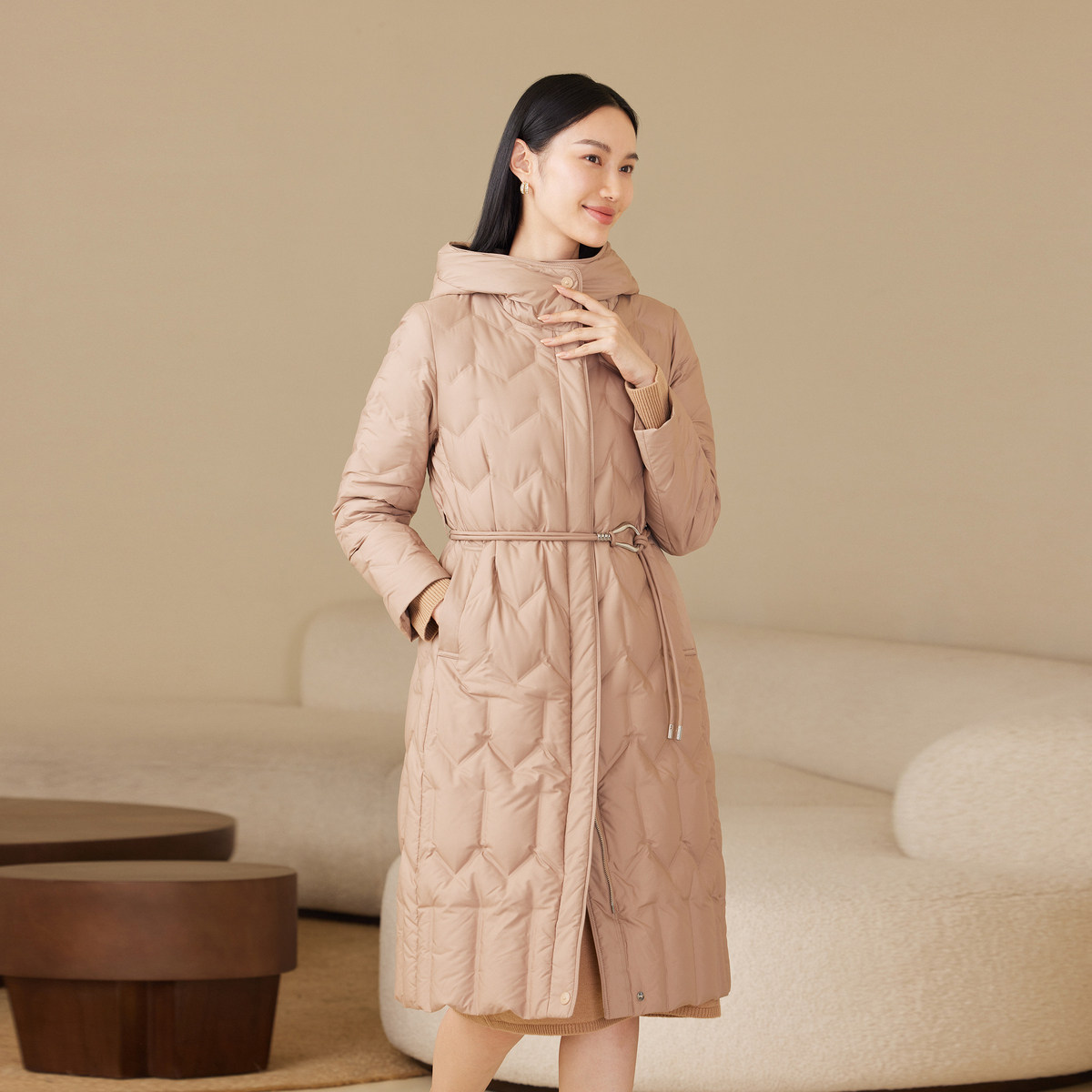 经典 波司登秋女长款 商务连帽轻薄羽绒服优雅气质显瘦保暖 鹅绒