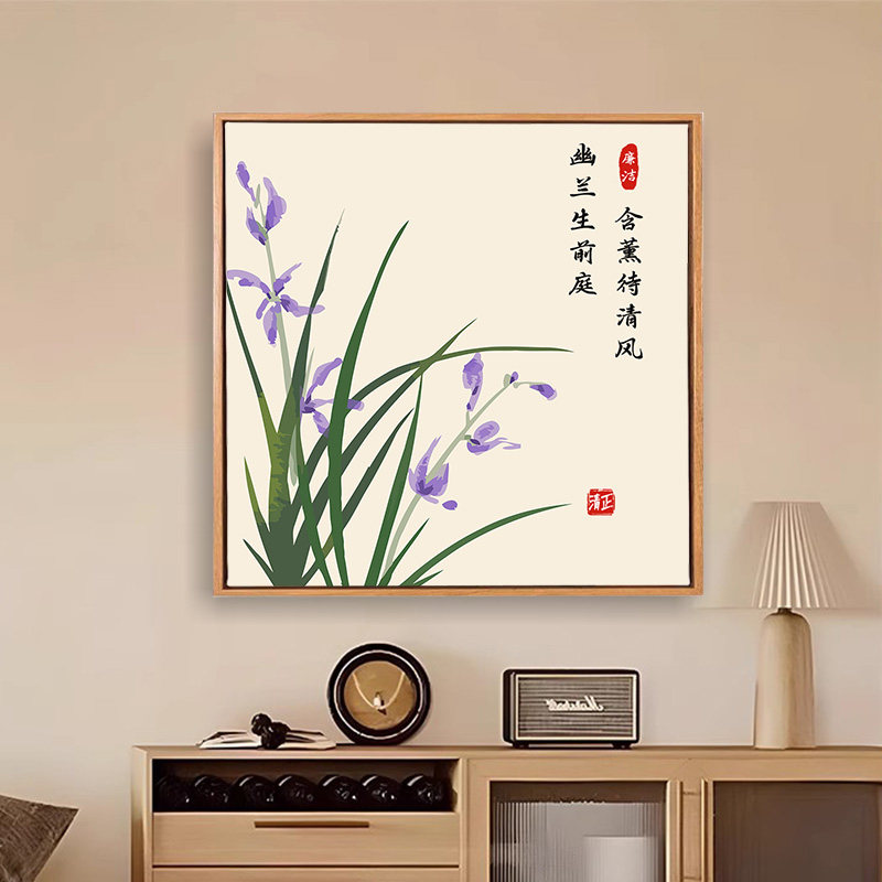 廉洁文化手工数字油画diy廉政主题绘画作品竹兰荷花莲花卉装 饰画