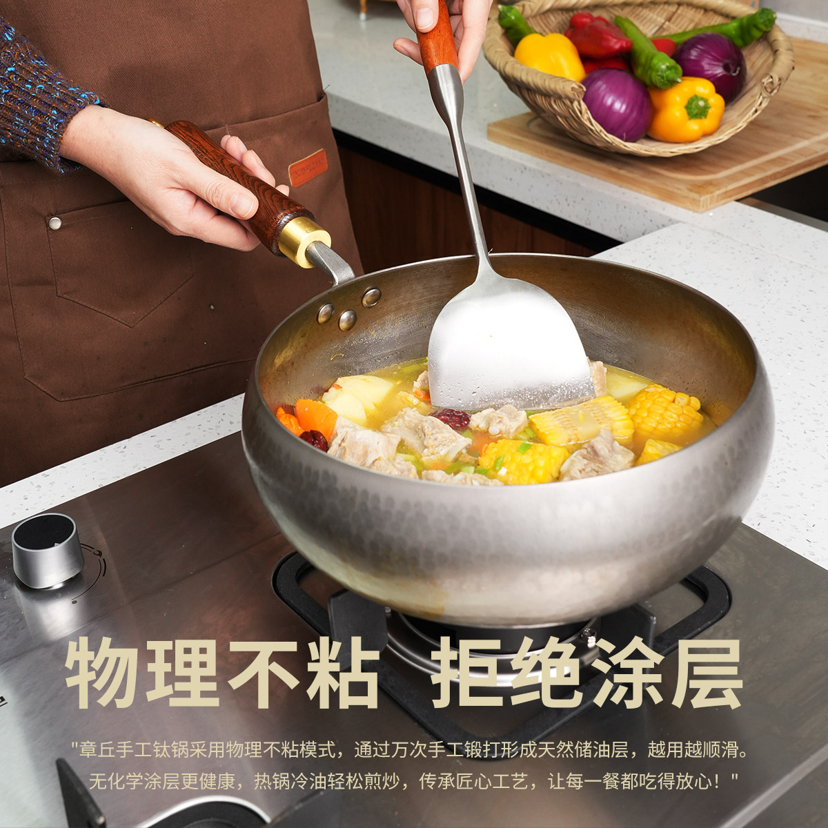章丘钛锅真手工锻打纯钛炒锅无涂层不粘锅不生锈家用炒菜锅小炒锅