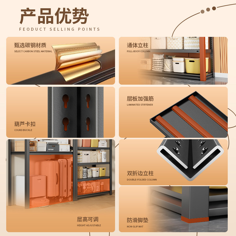 仓储货架置物架家用碳钢货架多层落地仓库阳台储物架杂物间地下室