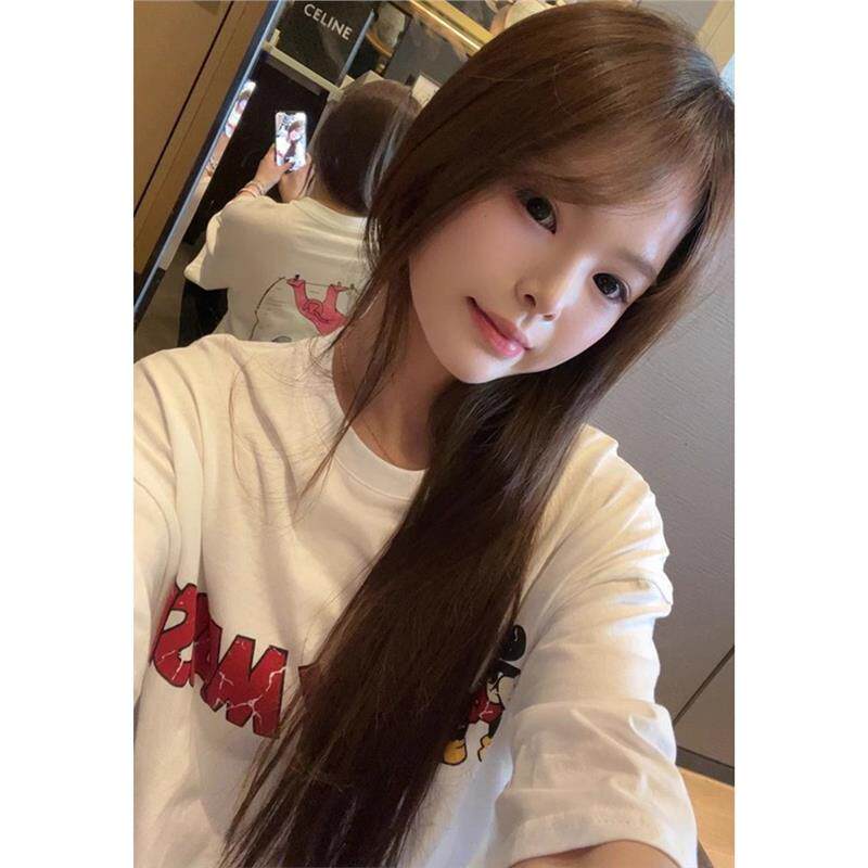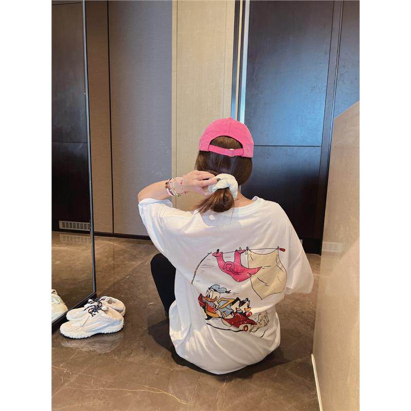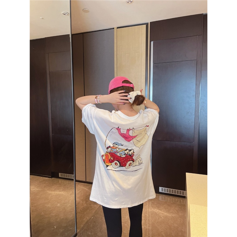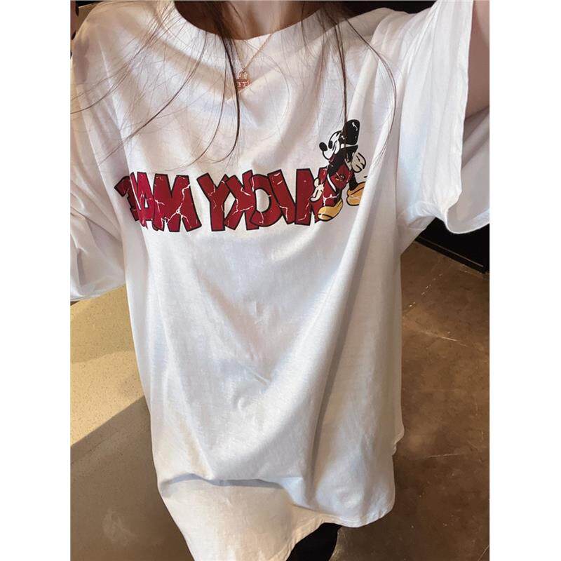 减龄T恤 米鼠做旧龟裂卡通印花宽松圆领短袖 韩国东大门夏季 新款