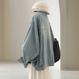 300斤特大码 穿搭设计感宽松显瘦上衣 胖mm蓝色牛仔外套女2026春季