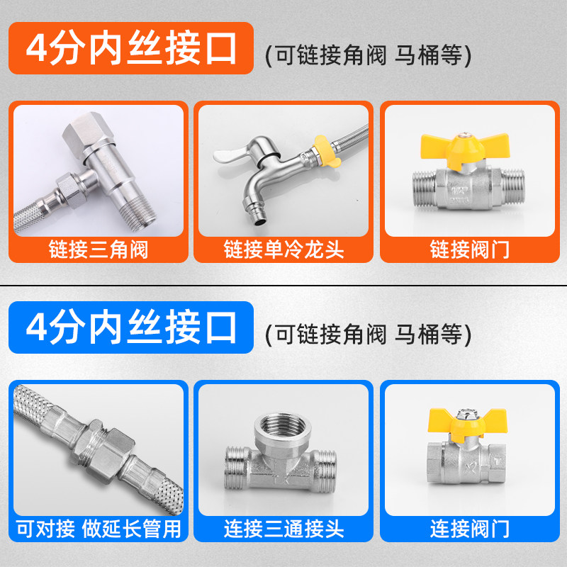 家用防爆延长管304不锈钢金属编织内外丝连接4分进水软管冷热水管
