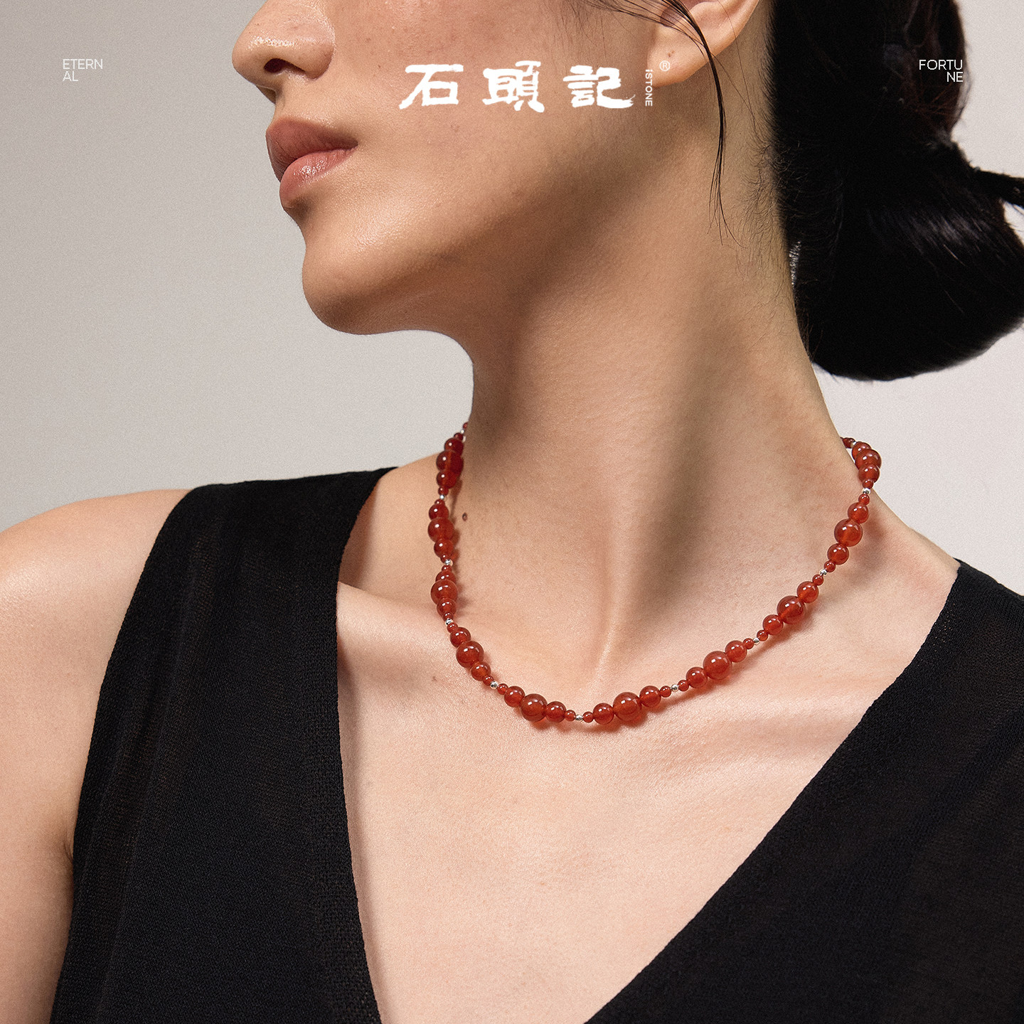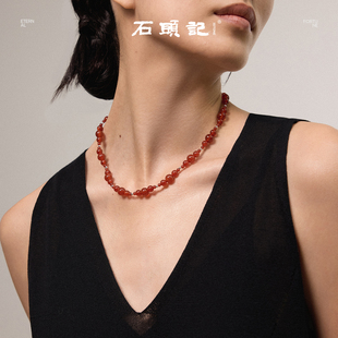 iSTONE 颈链 石头记不规则红玛瑙项链女转运珠轻奢高级感新中式