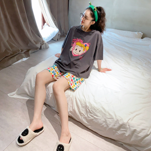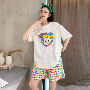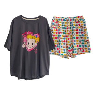 纯棉宽松大码 短裤 可外穿休闲青年家居服 短袖 动漫卡通睡衣女夏季