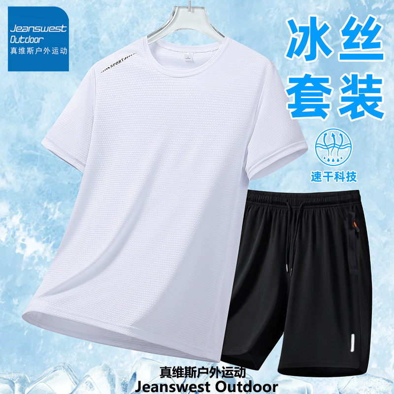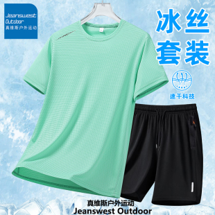 运动套装 真维斯户外运动男夏季 运动服两件装 短裤 冰丝凉感速干短袖