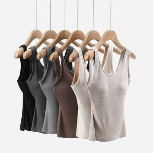 WTX08050 桑蚕丝混纺胸垫一体显瘦无痕抗皱美背裸感背心T恤