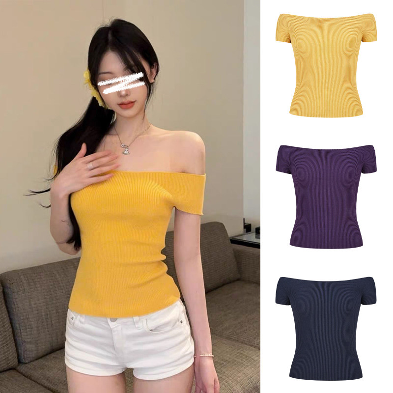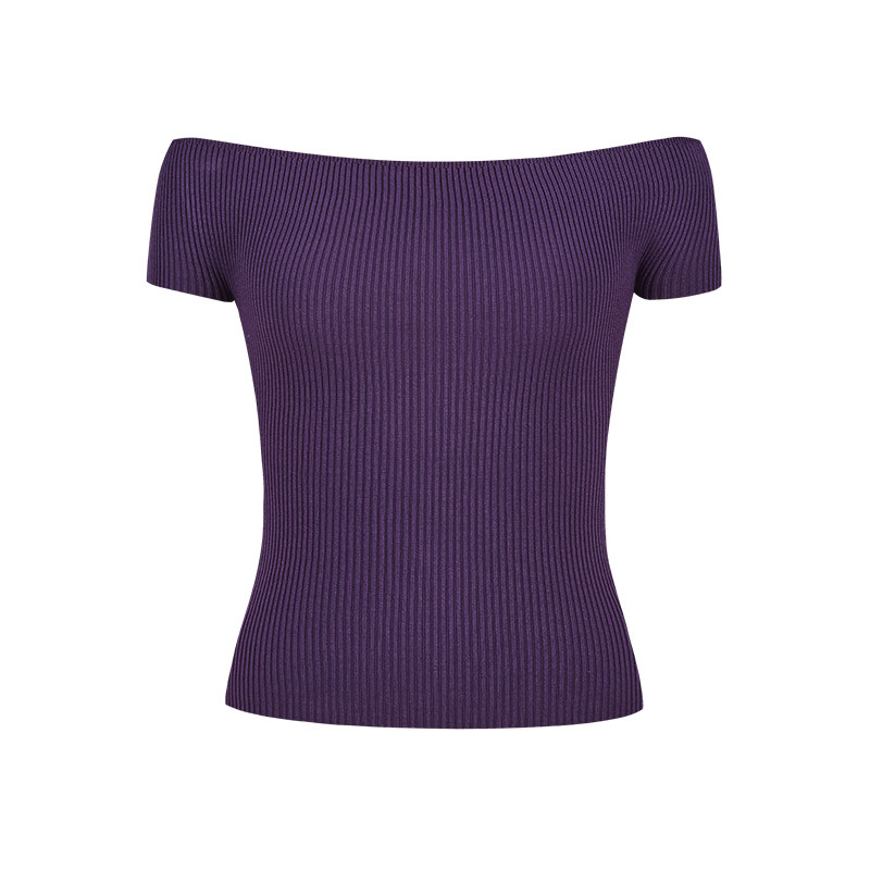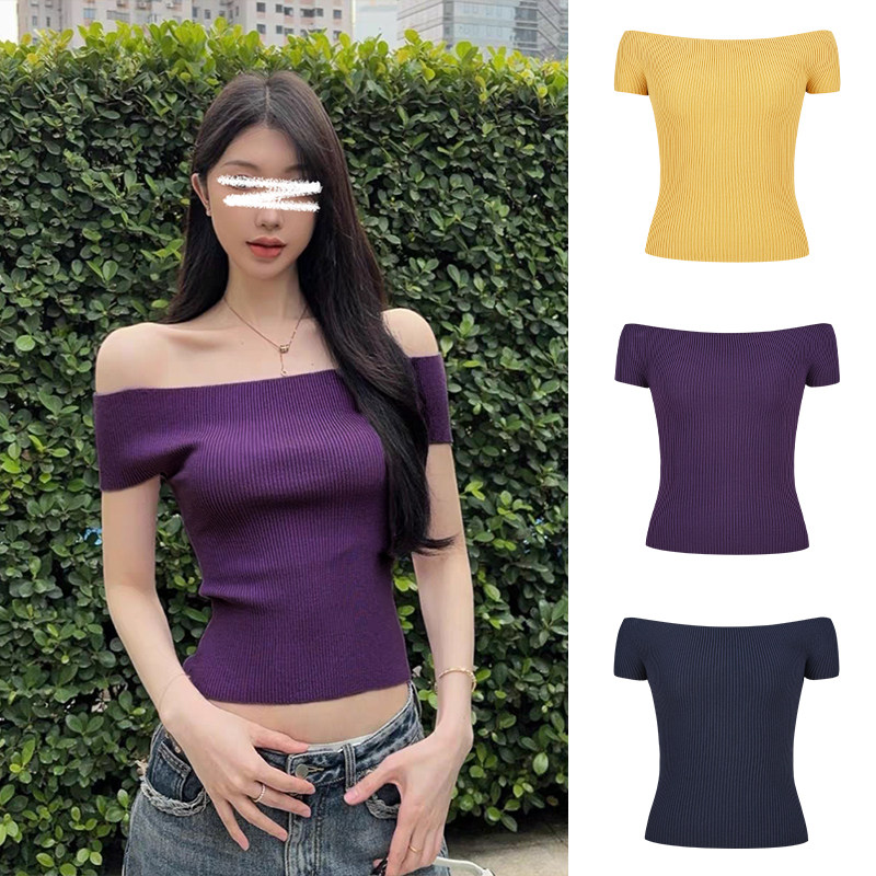 上衣 甜辣妹短款 MosesQueen魔西女王紫色一字肩针织短袖 t恤女夏季