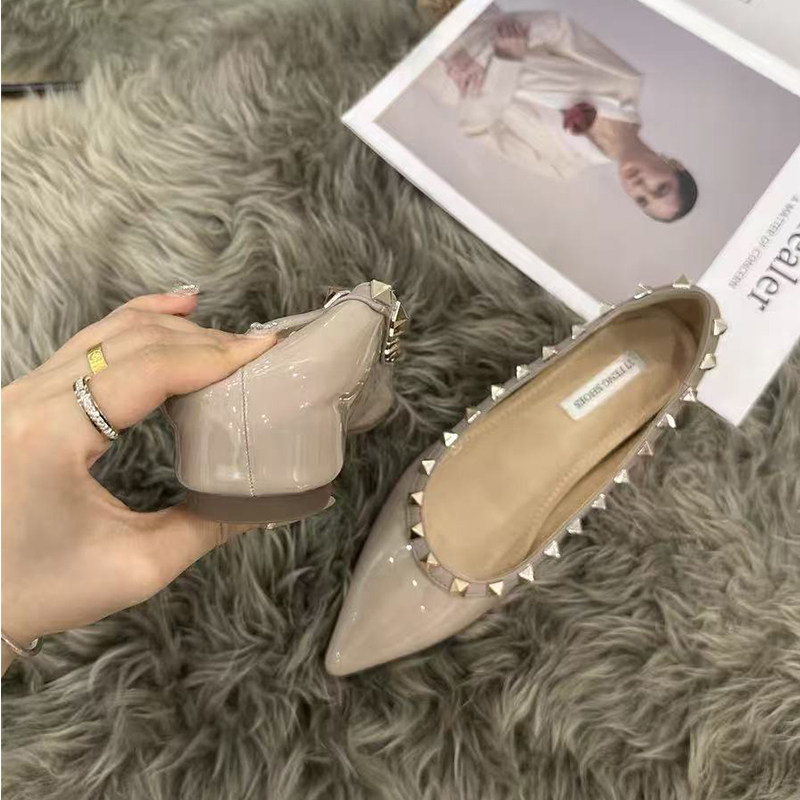百搭通勤女鞋 2025年新款 女浅口5CM内增高单鞋 铆钉尖头平底鞋 法式