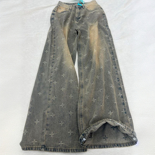 女装 梨形加厚裤 2025秋冬加绒牛仔裤 复古阔腿女裤 子 女美式 胖mm大码