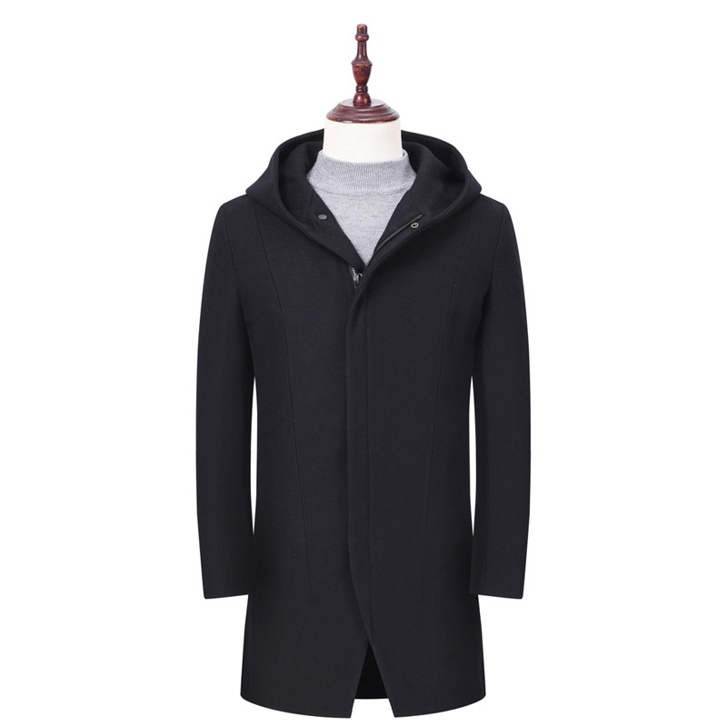 过膝韩版 顺毛呢子大衣男长款 宽松帅气毛呢外套男英伦风衣 新款 冬季