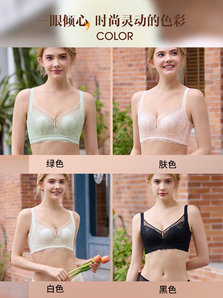 六只兔子前扣内衣女性感深V美背大胸显小法式 三角杯无钢圈文胸罩