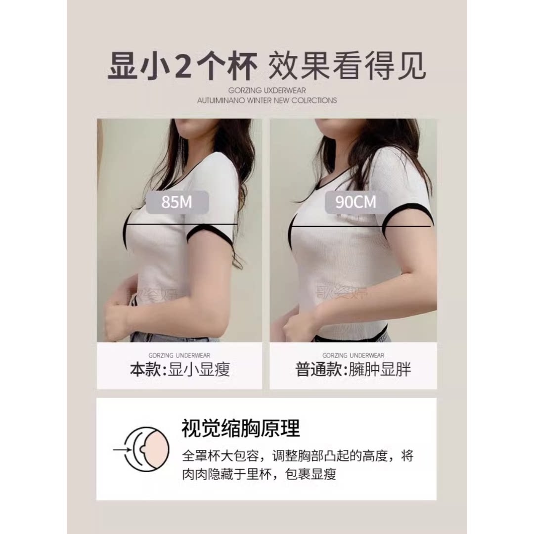 古今内衣女大胸显小胸秋无钢圈上托收副乳防下垂聚拢调整型文胸罩
