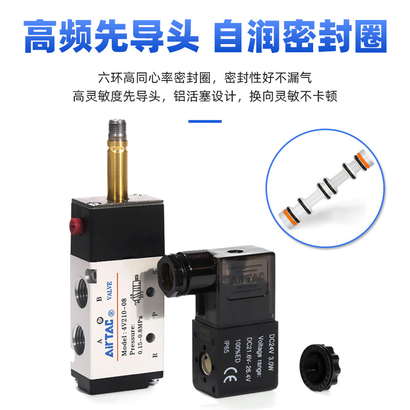 气动电磁阀4V210 08二位五通电子换向气阀24V气缸控制阀线圈220V