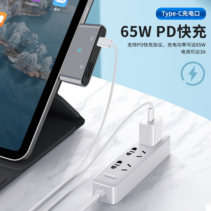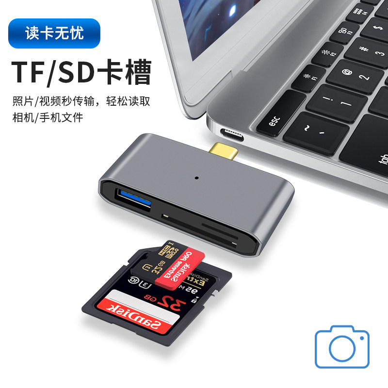 三合一拓展坞type c手机平板适用Mac苹果电脑U盘转接头macbookpro笔记本iPad华为小米usb转换器air相机读卡器
