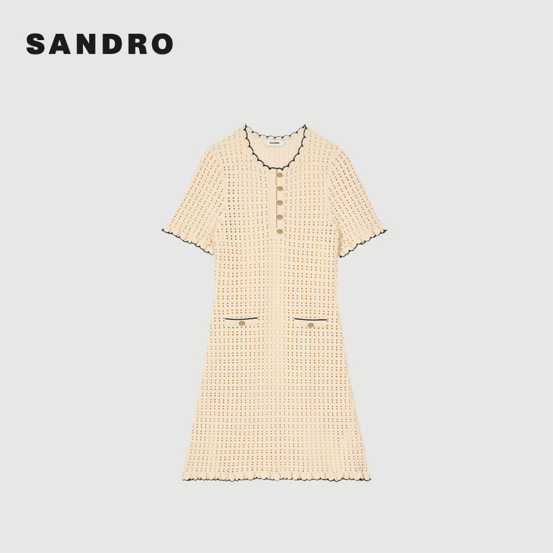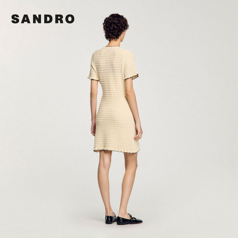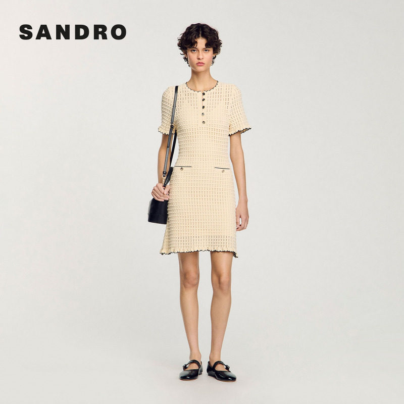 白色花边镂空两件套针织连衣裙 气质时尚 SANDRO2025秋冬女装 法式