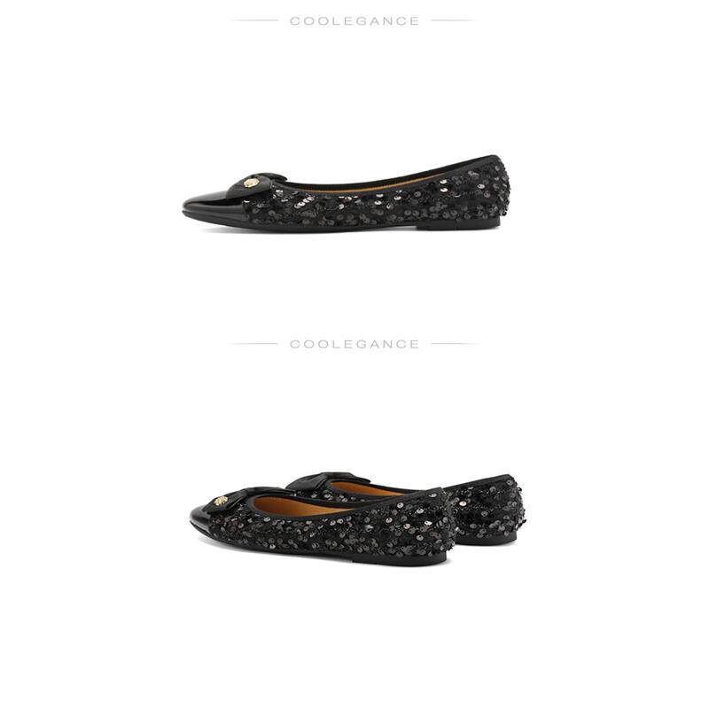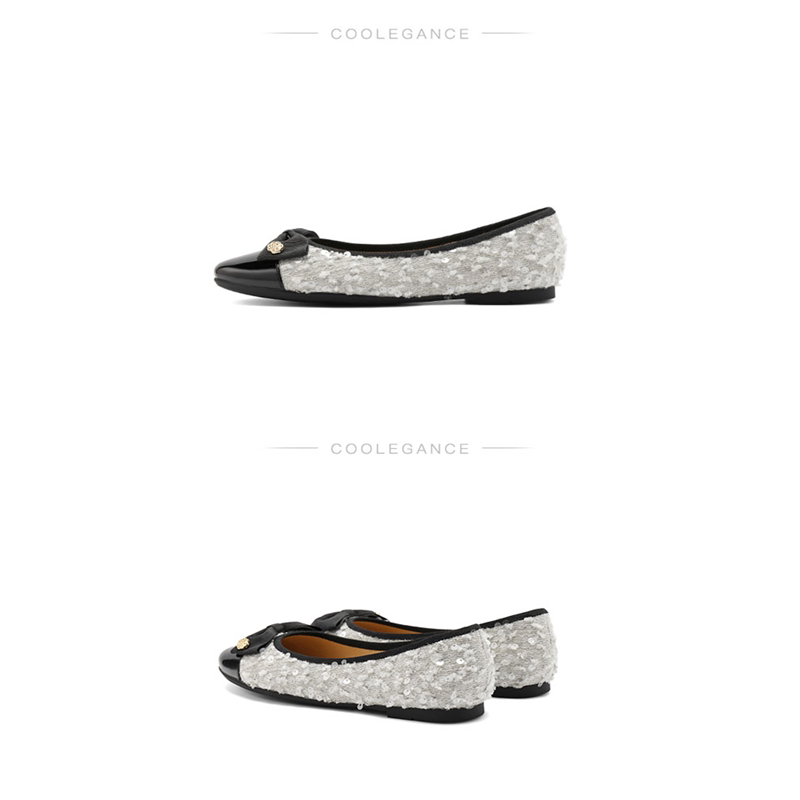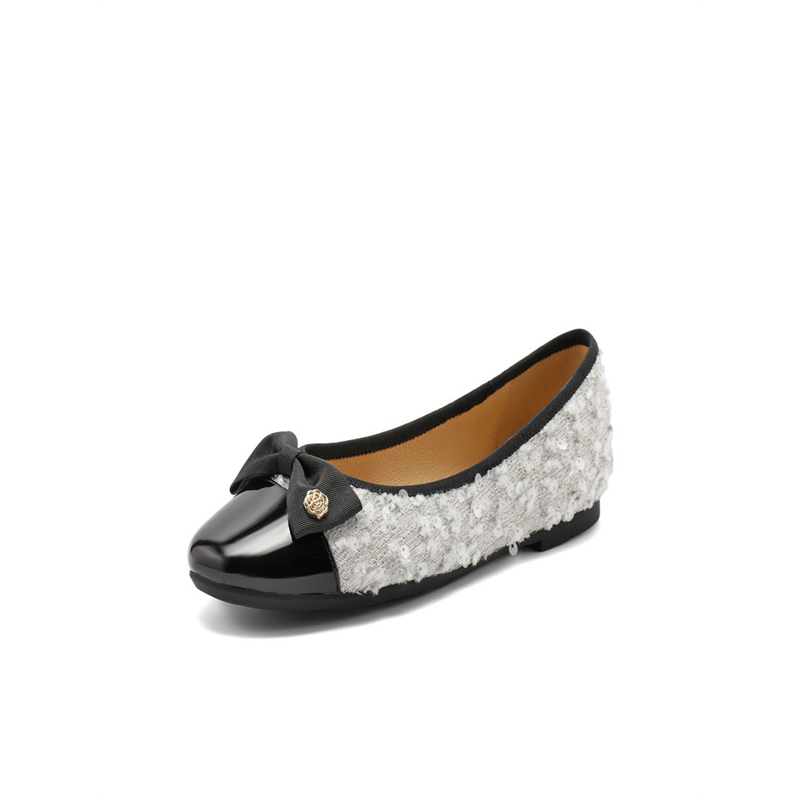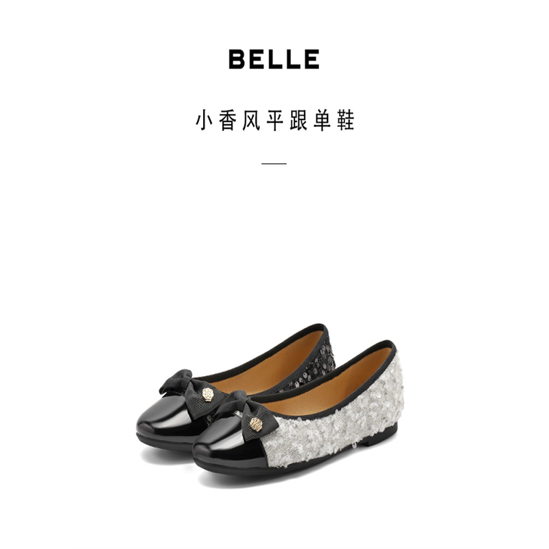 女鞋 B5L1 2024秋季 蝴蝶结拼色通勤单鞋 B5L1D 新款 百丽小香风平底鞋