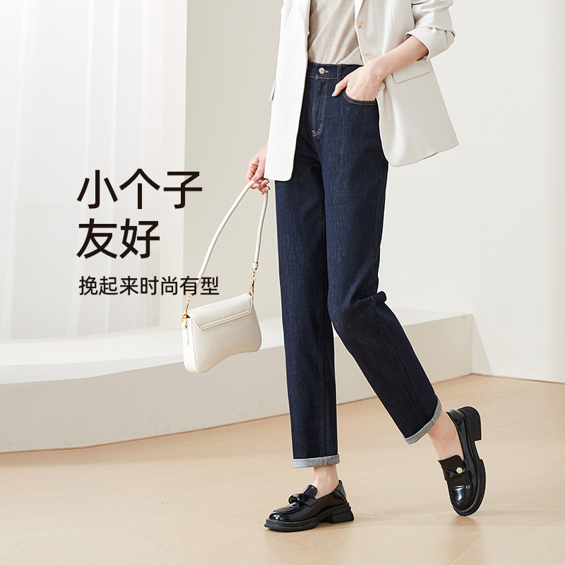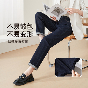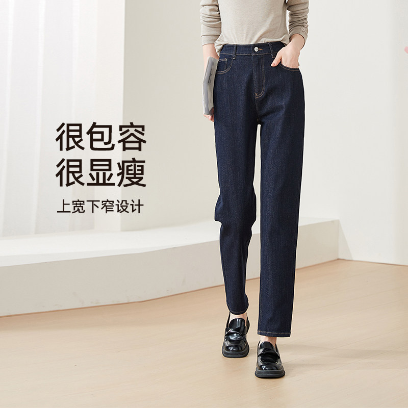 子 宽松显瘦老爹裤 逸阳深蓝色不易褪色高腰哈伦牛仔裤 女2025秋季