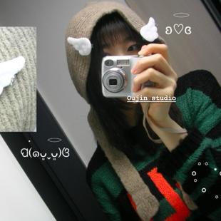 原创小熊头套大眼黑猫包包挂件毛绒小玩偶可爱公仔精致挂饰钥匙扣