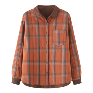 艾格复古夹棉长2025袖 女宽松显瘦百搭文艺棉衣百搭休闲上衣 衬衫
