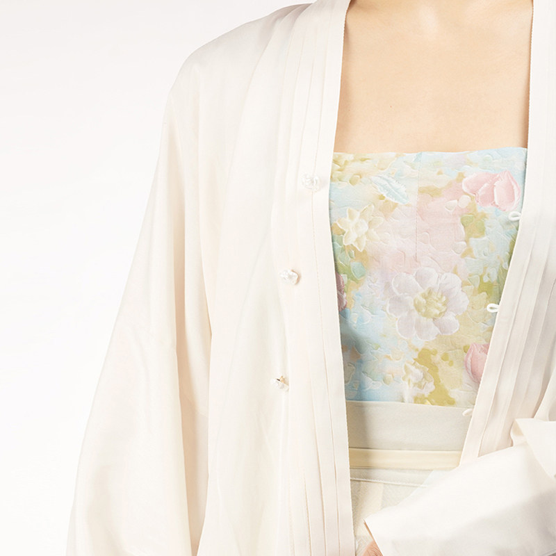 上衣新款 新中式 花木深白色衬衫 改良汉服国风提花衬衣 斓曦同款