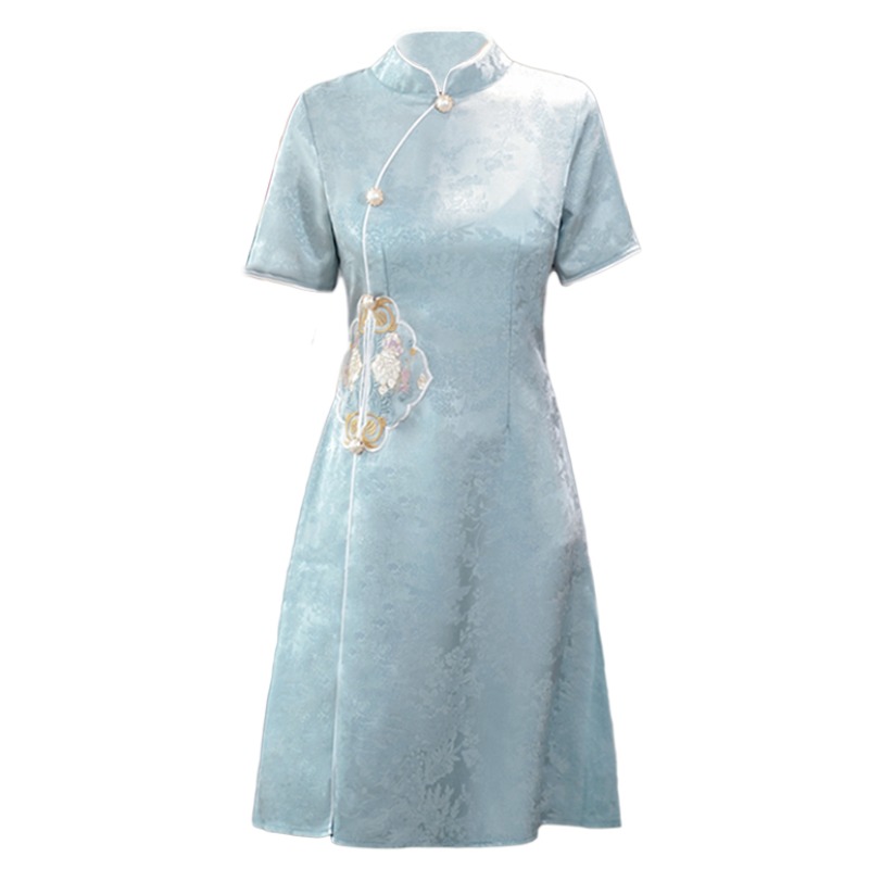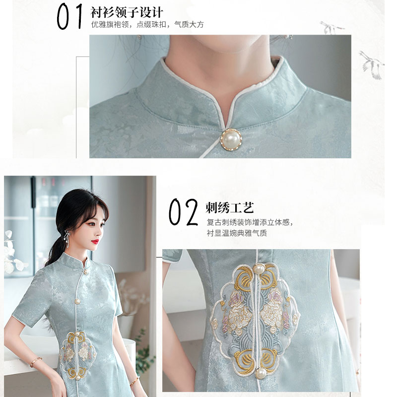 连衣裙女夏 高端气质大码 小个子中年妈妈礼服新中式 改良旗袍年轻款