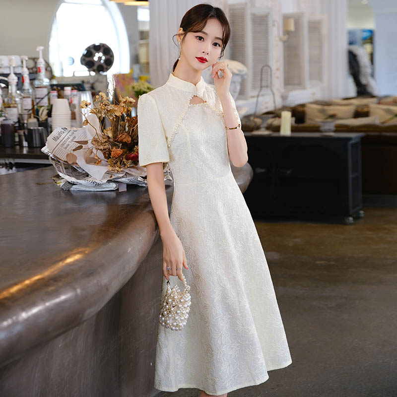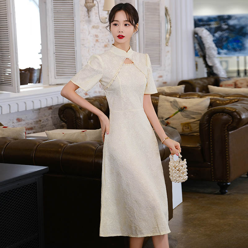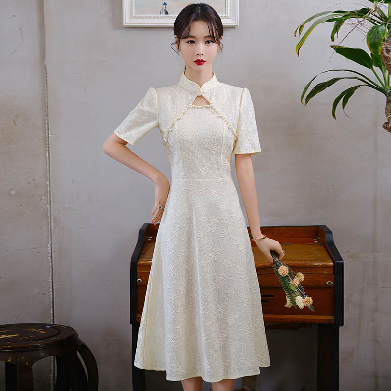胖MM修身 新款 气质温柔中长连衣裙 改良旗袍裙子女2025夏季 复古中式