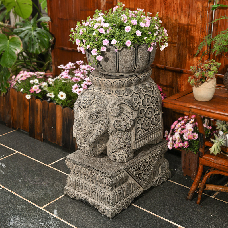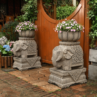 门口大象摆件小院布置花盆小象雕塑花盆底座别墅装 饰庭院造景
