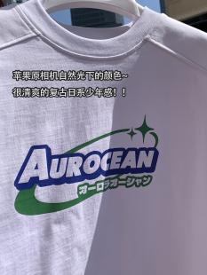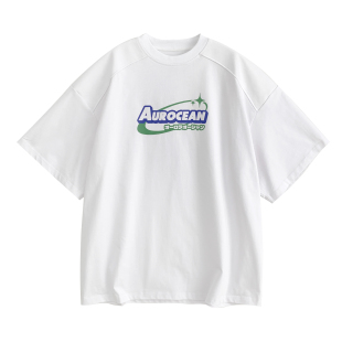 320克重磅全棉蓝绿撞色简约少年感廓形短袖 Aurocean 复古印花T恤