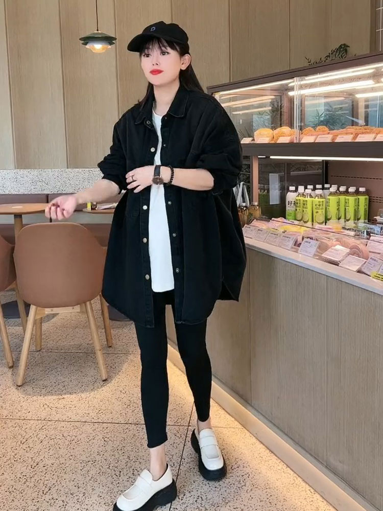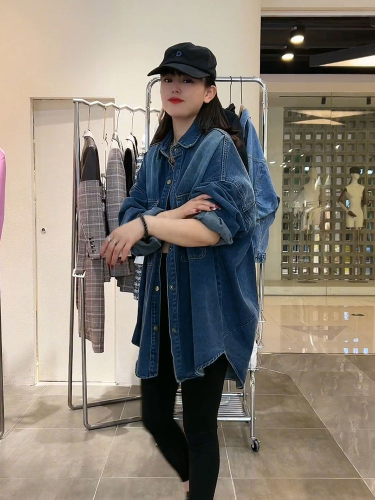 慵懒风中长款 外套女春季 衬衣小众上衣潮 复古渐变牛仔衬衫 欧货美式