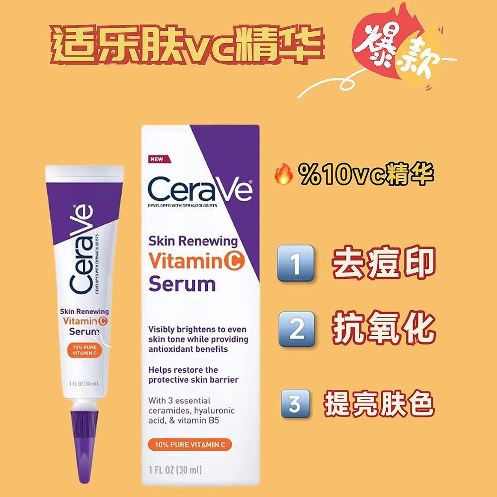 澳大利亚直邮CeraVe适乐肤维生素C面部精华透明质酸淡化痘印30ml
