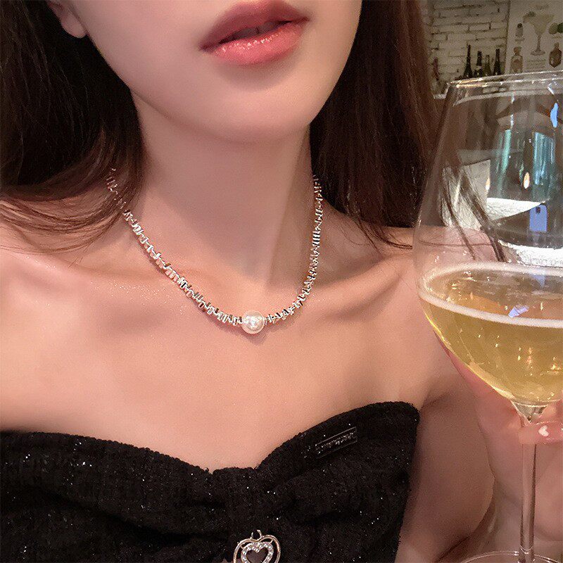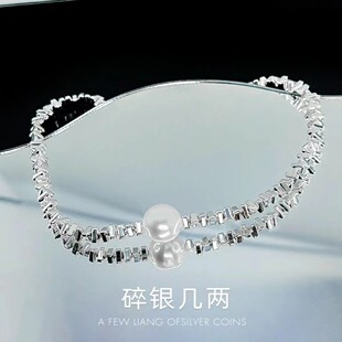 网红爆款 不规则碎银子珍珠项链女生高级感小众串珠颈链配饰锁骨链