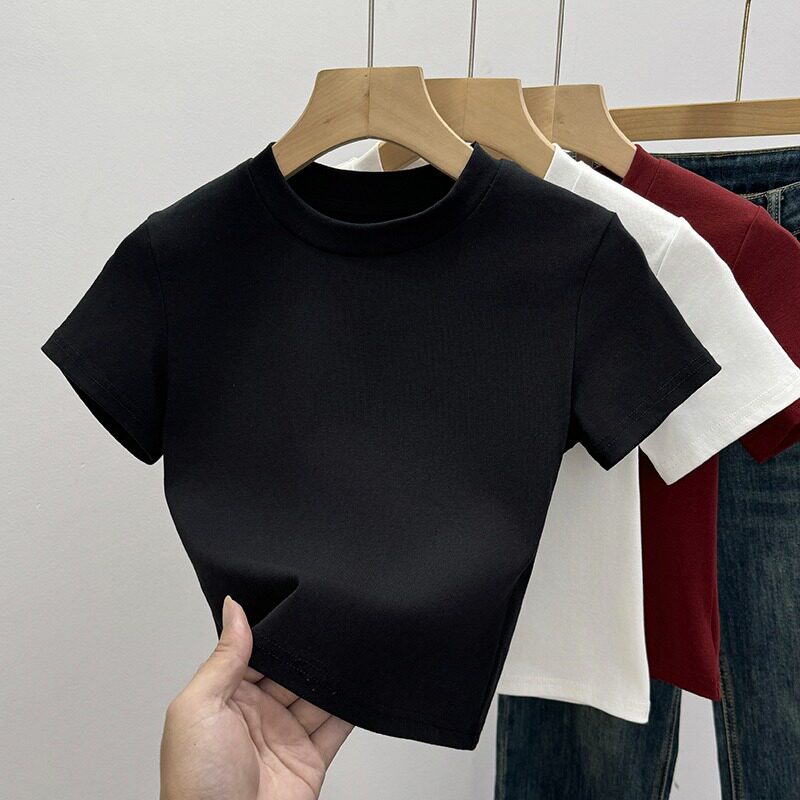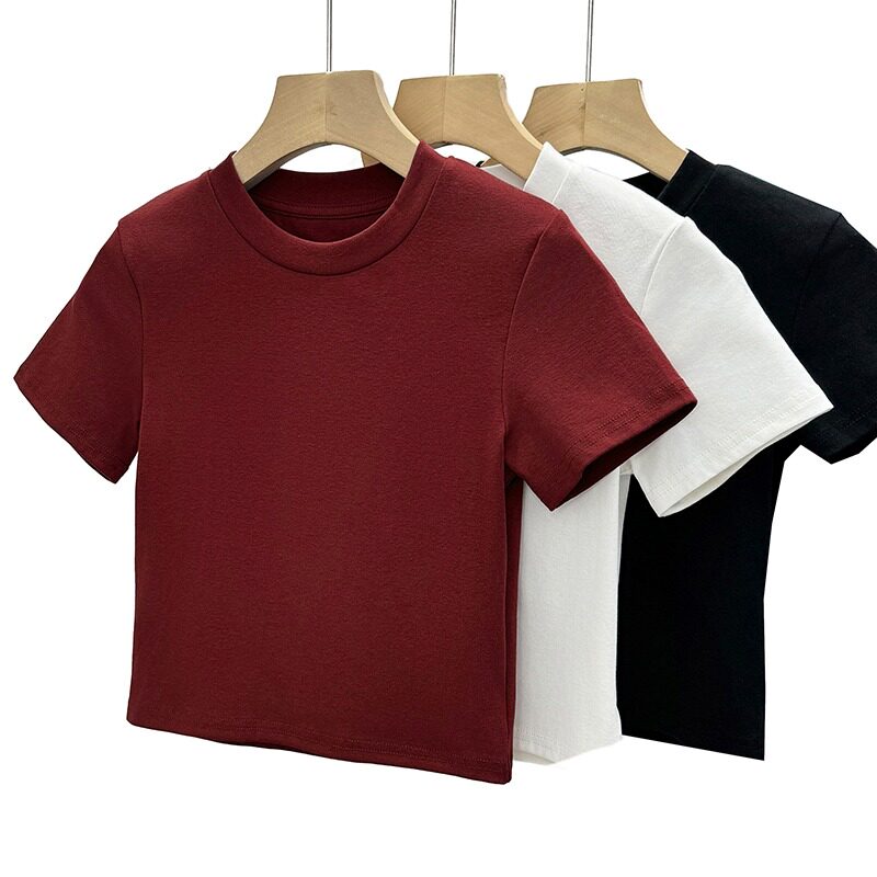 145小个子上衣设计感小众高级感正肩短袖 圆领短款 t恤xs女 新款 夏季
