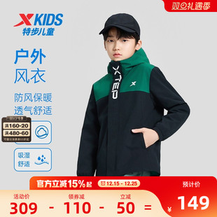 加绒户外防风摇粒绒保暖风衣冬装 新款 儿童厚外套男童冬季 特步童装