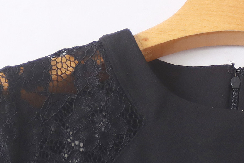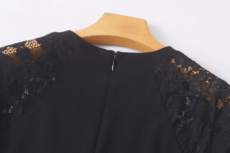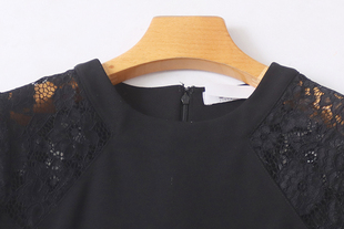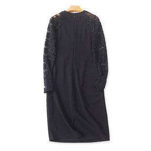 修身 圆领蕾丝拼接连衣裙 收腰中长款 长袖 百搭女裙子04092 春秋新款