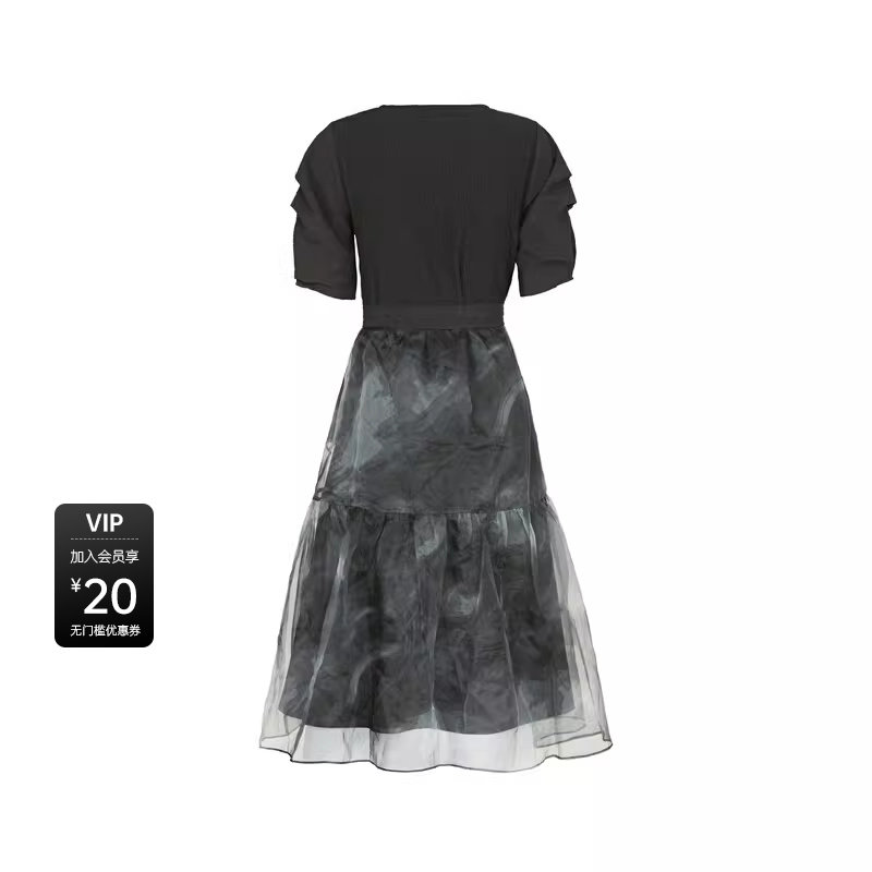 圆领欧根纱晕染收腰连衣裙S242Z12C6 法式 sdeer圣迪奥夏季 女装