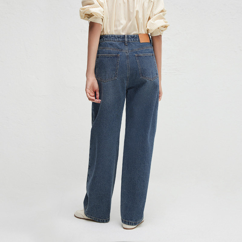 女高腰宽松气质直筒长裤 播春秋复古牛仔裤 DDR3KD5017 播奥莱
