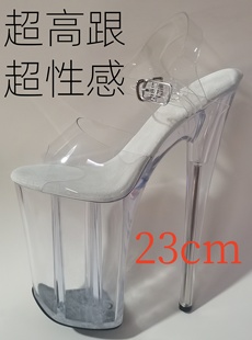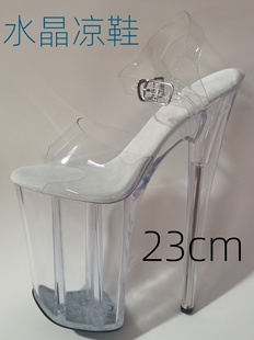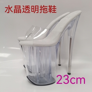 欧美国内外23cm水晶透明PVC亮片恨天高走秀细跟钢管舞模特高跟鞋