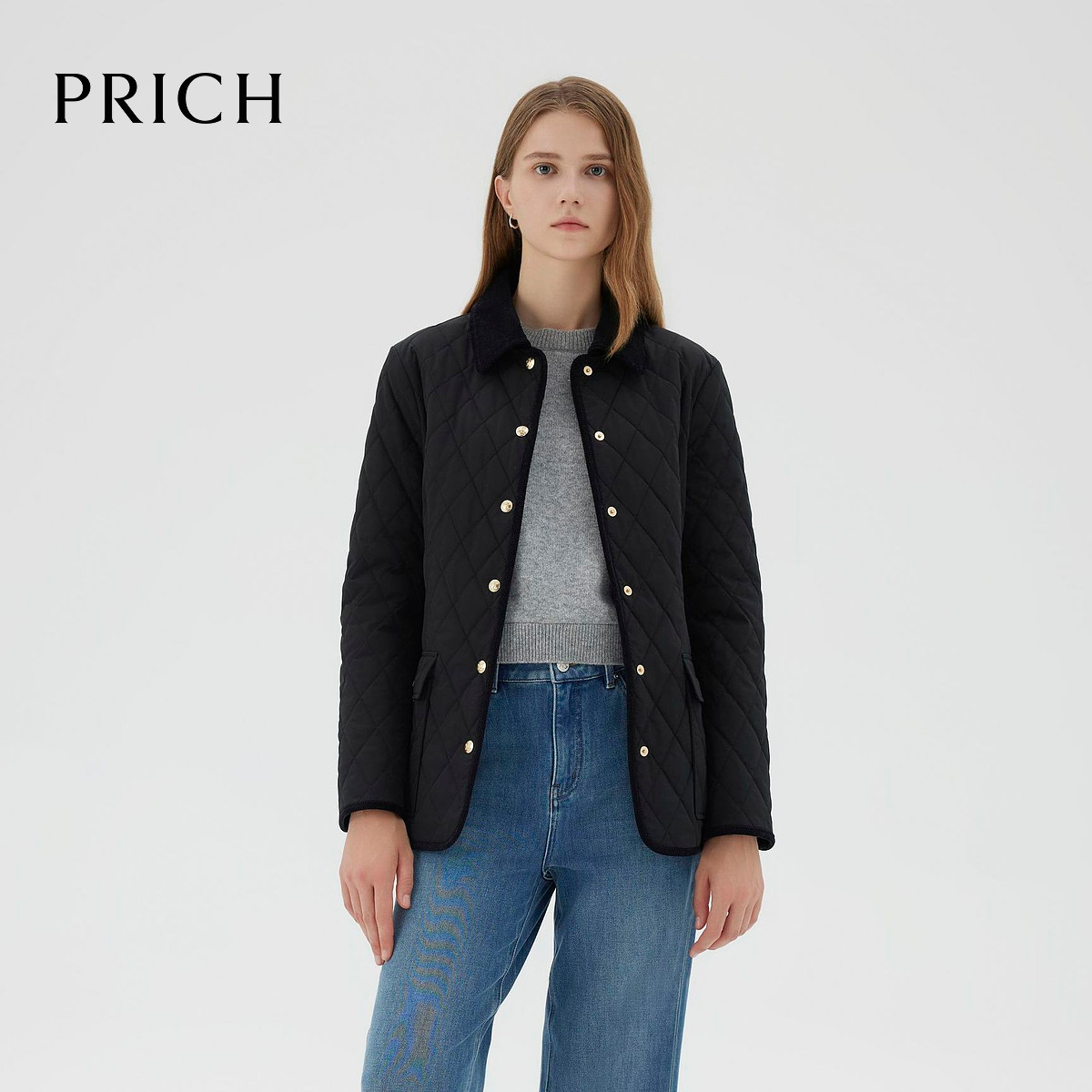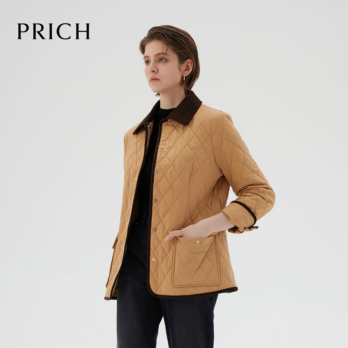 棉衣短外套女 PRICH复古菱格轻薄绗缝棉服冬季 中空保暖