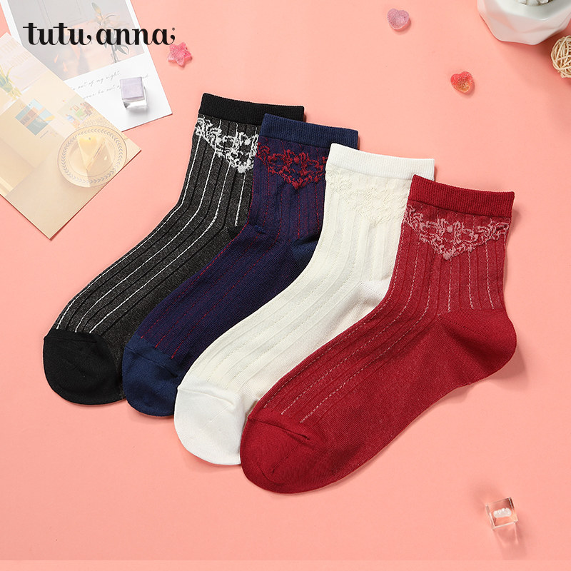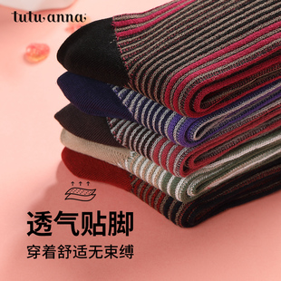 全棉短袜子女春秋季 短筒袜无骨 纯棉吸汗防臭透气中筒运动风秋冬款