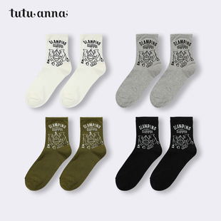 ins潮春夏季 男女士中筒袜黑白纯棉运动袜简约短袜长筒袜无骨防臭