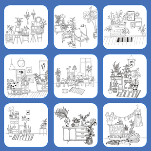 创意场景线稿描摹本线描手绘控笔训练儿童趣味画美术材料画册临摹写生素材图片兴趣班教程课件马克笔简笔画画稿黑白涂色入门小学生